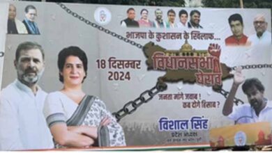 लखनऊ में कांग्रेस दफ्तर के बाहर लगे पोस्टर, बुधवार को विधानसभा घेराव