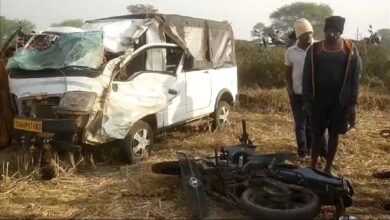 अनियंत्रित मैक्सी कैब खेत में घुसी, बाइक सवार सहित 6 लोग घायल