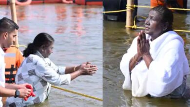 राष्ट्रपति द्रौपदी मुर्मू ने त्रिवेणी संगम में लगाई डुबकी