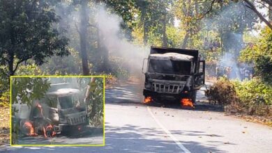 चिरई घाट पर चलती ट्रक में लगी आग, वाहन से कूदकर चालक-परिचालक ने बचाई जान