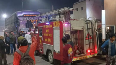 चांडक चौक ब्रिज पर इंदौर जा रही चलती ऐसी बस में लगी आग, मची अफरा तफरी