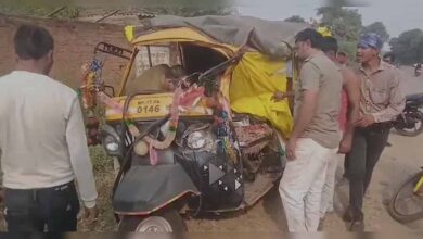 तेज रफ्तार हाईवा ने एक यात्री सवार ऑटो पर मारी जोरदार टक्कर, चार लोगों की मौत