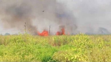 गन्ने की फसल में लगी भीषण आग, किसानों को लाखों का नुकसान