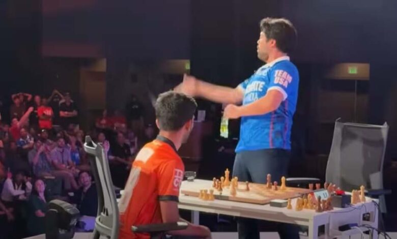 अमेरिका के स्टार चेस खिलाड़ी हिकारू नाकामुरा काफी सुर्खियों में हैं. नाकामुरा ने यूएसए vs इंडिया चेकमेट टूर्नामेंट में जैसी हरकत की, वो खेल भावना के खिलाफ थी. नाकामुरा अपने दिखावटी जश्न के कारण विवादों में घिर गए हैं. नाकामुरा ने वर्ल्ड चैम्पियन डी गुकेश को हराने के बाद चेस बोर्ड से गुकेश के किंग को उठाया और उसे दर्शकों की ओर फेंक दिया. इस टूर्नामेंट में यूएसए ने भारत को 5-0 से हराया.