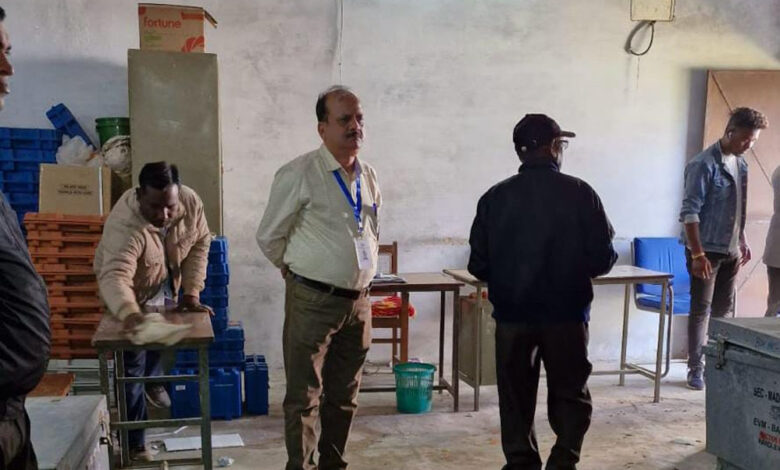 पंचायत एवं नगरीय उप निर्वाचन 2024 हेतु उपयोग में लाए जाने वाले ईव्हीएम मशीनों की ईव्हीएम वेयर हाऊस में संचालित एफएलसी (फर्स्ट लेवल चेकिंग) का निरीक्षण मध्यप्रदेश राज्य निर्वाचन आयोग द्वारा नियुक्त प्रेक्षक श्री शैलेन्द्र कियावत द्वारा किया गया। इस अवसर पर राजनैतिक दलों के प्रतिनिधि उपस्थित थे। एफएलसी का कार्य राज्य स्तरीय मास्टर ट्रेनर श्री अजय जैन एवं डॉ. कौशलेन्द्र सिंह की उपस्थिति में किया जा रहा है।