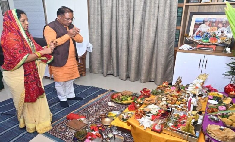 मुख्यमंत्री विष्णु देव साय ने मुख्यमंत्री कैम्प कार्यालय, बगिया (जशपुर) में सपरिवार गोवर्धन पूजा कर प्रदेश की सुख-समृद्धि, शांति और खुशहाली की कामना की। इस अवसर पर मुख्यमंत्री की माता मती जसमनी देवी साय, धर्मपत्नी मती कौशल्या साय एवं परिवार के अन्य सदस्य उपस्थित थे।