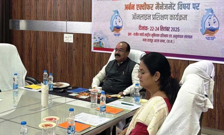 प्रदेशभर के नगरीय निकायों के वरिष्ठतम अधिकारियों और अभियंताओं को अर्बन एक्वीफर मैनेजमेंट विषय पर देश-विदेश के विशेषज्ञ प्रशिक्षण दे रहे हैं। प्रशिक्षण के पहले दिन 22 सितम्बर को राजीव गांधी राष्ट्रीय भूमिजल प्रशिक्षण एवं अनुसंधान संस्थान, नवा रायपुर की वैज्ञानिक सु बिजिमोल जोस के साथ ही सीजीडब्ल्यूबी, चेन्नई के वैज्ञानिक डॉ. एम. सेंथिल कुमार ने शहरी क्षेत्रों के जल भू-विज्ञान के बारे में जानकारी दी। वहीं मानव रचना इंटरनेशनल इंस्टीट्यूट ऑफ रिसर्च एंड स्टडीज, फरीदाबाद के प्राध्यापक डॉ. अरुणांग्शु मुखर्जी ने छत्तीसगढ़ के प्रमुख शहरों में भू-जल परिदृश्य के बारे में बताया।