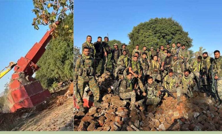 छत्तीसगढ़ में सुरक्षा बल के जवानों ने आज नक्सलियों की मांद में घुसकर उनका मनोबल तोड़ दिया है. प्रदेश के अंतिम छोर और तेलंगाना से सटे पुजारी कांकेर में नक्सलियों का कई फीट ऊंचे स्मारक को जवानों ने ध्वस्त कर दिया है. यह स्तंभ दोनों राज्यों की सीमा पर पुजारी कांकेर के तामील भट्टी में स्थित था और नक्सलियों के आतंक के चलते इसे इंटरस्टेट रेड कारीडोर के रूप चर्चित था, जिसे आज जवानों ने तोड़ दिया है.