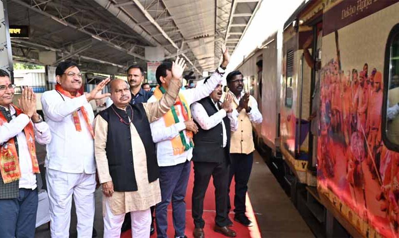 मुख्यमंत्री विष्णुदेव साय की पहल पर शुरू की गई श्री रामलला दर्शन योजना के तहत चलाई जा रही विशेष ट्रेन आज रायपुर रेल्वे स्टेशन के प्लेटफार्म नंबर-07 से रवाना हुई। राजस्व मंत्री टंक राम वर्मा ने हरी झंडी दिखाकर ट्रेन को रवाना किया। इस विशेष ट्रेन से 850 श्रद्धालुओं का जत्था अयोध्या धाम के लिए रवाना हुआ। इस दौरान खाद्य मंत्री दयाल दास बघेल, विधायक पुरंदर मिश्रा सहित अनेक जनप्रतिनिधिगण और बड़ी संख्या में श्रद्धालु उपस्थित थे।