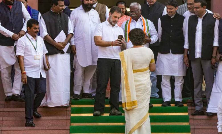 जैसे ही प्रियंका ने सीढ़ियां चढ़ना शुरू कीं, राहुल गांधी ने मुस्कुराते हुए कहा, "स्टॉप… स्टॉप!"। प्रियंका रुक गईं और चौंककर भाई की ओर देखने लगीं। तभी राहुल ने अपनी जेब से मोबाइल निकाला और बोले, "मुझे भी एक फोटो लेने दो।" इस पर वहां मौजूद सांसद और नेता मुस्कुराने लगे।