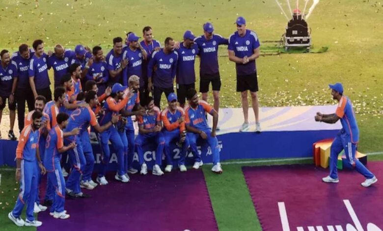 इसके बाद दुबई इंटरनेशनल स्टेडियम में एक अनोखा नजारा देखने को मिला जब प्रेजेंटेशन सेरेमनी असफल हो गई, लेकिन भारतीय खिलाड़ी मैदान पर ही सेलिब्रेशन मनाने से नहीं रुके. अधिकारियों के चले जाने के बाद टीम ने पोडियम पर जाकर अपनी खुशी जताई. कप्तान सूर्यकुमार यादव ने ट्रॉफी उठाने का अंदाज अपनाया और रोहित शर्मा के टी20 वर्ल्ड कप सेलिब्रेशन को भी रिपीट किया.